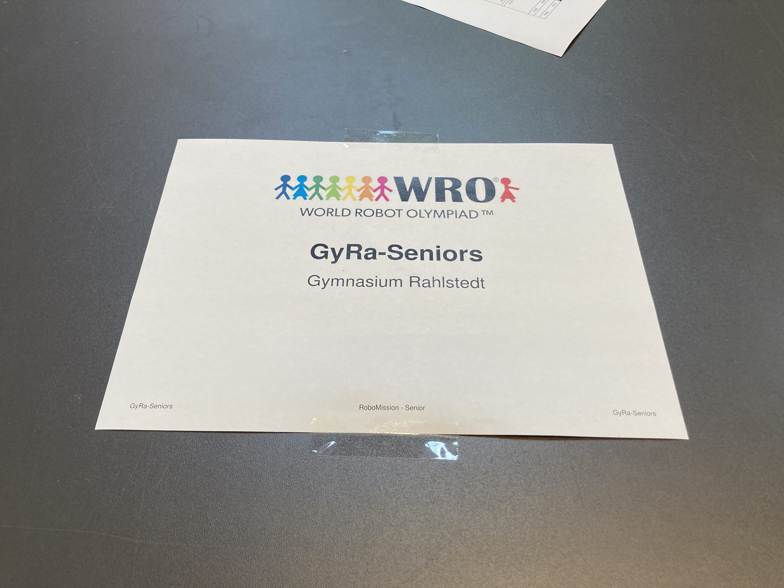 Zum ersten Mal nahm das GyRa in diesem Jahr auch an der Disziplin „Roboter-Mission“ in der Altersklasse „Senior“ teil: Oskar (10c) und Lucas (S4) hatten den Wettbewerb im vergangenen Jahr beobachtet und sich in diesem Jahr zu einer Teilnahme entschlossen. In diesem Wettbewerb muss der Roboter vor Ort neu zusammengebaut werden. Die Aufgaben wechseln jedes Jahr und werden erst Ende Januar bekannt gegeben. Nur zwei Teams hatten sich das in diesem Jahr in Hamburg zugetraut – am Ende hatte das GyRa die Zahnräder vorn und durfte den Pokal mitnehmen: