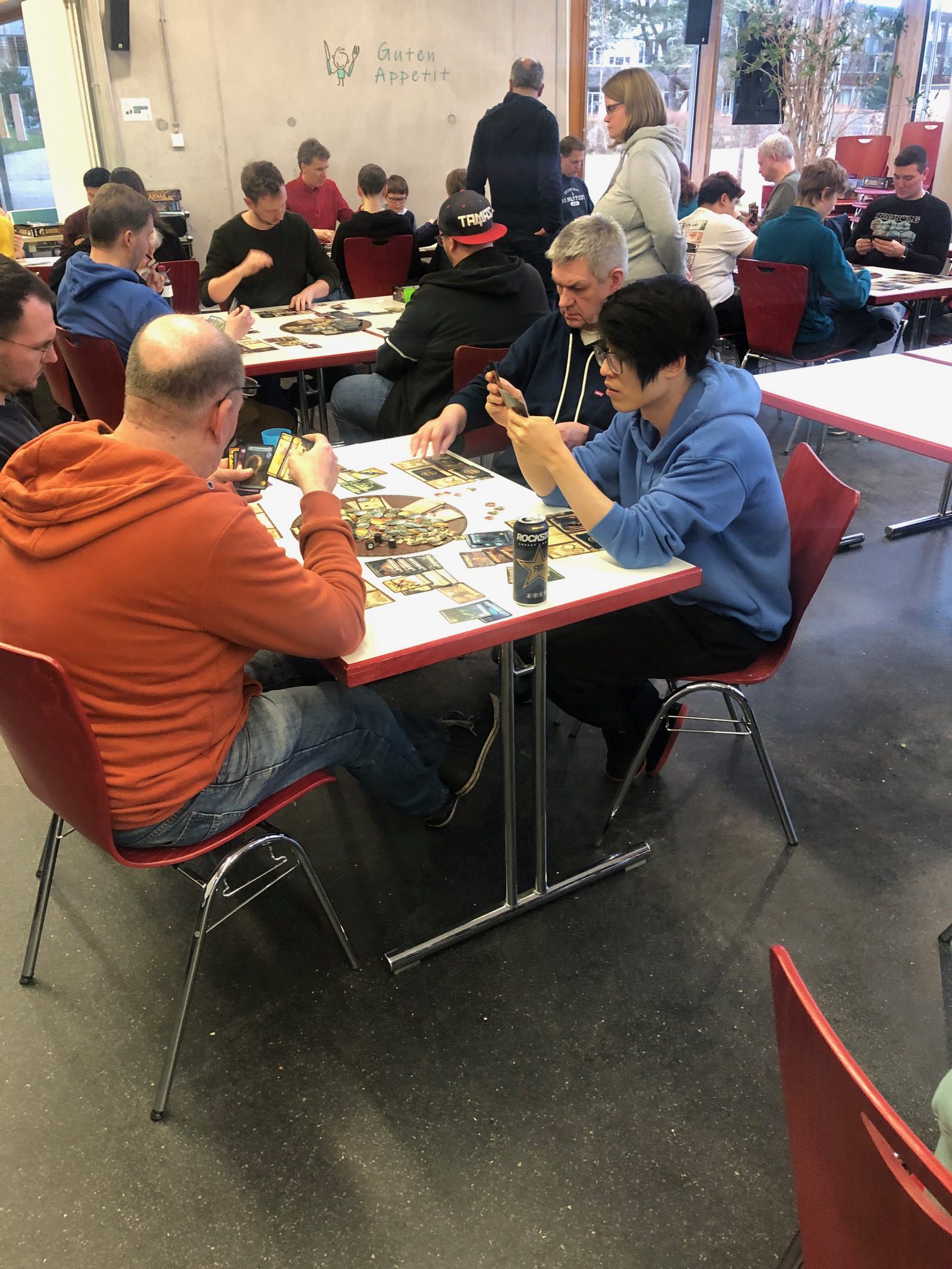 Am Sonntag, den 25.2. fand am Gymnasium Rahlstedt zum zweiten Mal die Regionale Vorausscheidung zur Deutschen Mannschaftsmeisterschaft im Brettspiel (kurz: RegVor) statt. Wie auch im letzten Jahr haben wir uns gedacht, dass nichts näher liegt, als mit zwei Schulmannschaften daran teilzunehmen. 8 Teilnehmerinnen und Teilnehmer sowie zwei Ersatzspielerinnen, bestehend aus Schülern, Eltern, Lehrern und einem ehemaligen Schüler, traten für das GyRa an.