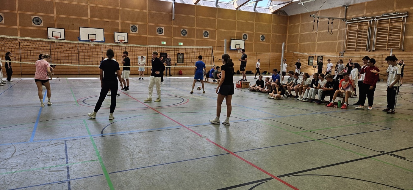 Am letzten Montag des Schuljahres (15.07.24) fand das langersehnte Volleyballturnier der neunten Klassen statt. In insgesamt 25 fesselnden Spielen kämpfte je ein Mixed-Team pro Klasse in zwei verschiedenen Gruppen um den Sieg. Auch die IVK (Internationale Vorbereitungsklasse) trat mit einem Mixed-Team an und kämpfte bis zum Schluss unermüdlich um jeden Punkt.
