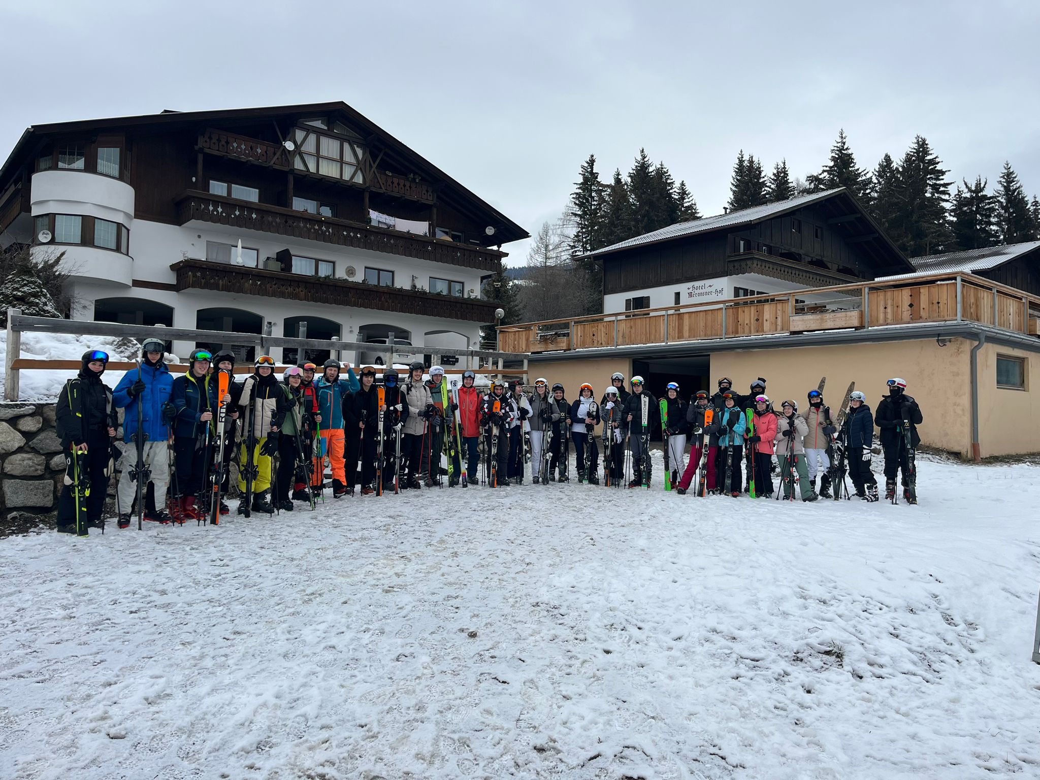 Mit einem Gefühlsmix aus Vorfreude und Ungewissheit bestiegen wir – der Sportkurs Ski/Fitness der Oberstufe – am 30.01 den Bus in Richtung Südtirol. Wir staunten nicht schlecht als wir den modernen Bus betraten und neben (erstaunlich!) bequemen Sitzen auch USB-Steckdosen und eine gut-funktionierende Klimaanlage vorfanden. Es ging schonmal gut los! Mit den schon lange im Voraus vorbereiteten Snacks, Decken und Nackenkissen hielten wir die knapp zwanzigstündige Busfahrt ohne Probleme durch. Als dann die Stimmung gegen Stunde zwanzig zu kippen drohte, belohnte der Blick aus dem Fenster auf Berge und ein verschneites Winterwonderland. Die lange Busfahrt war im Nu vergessen und alle waren jetzt auf unser Zuhause für die nächsten Tage gespannt– den Ort Meransen in Südtirol und auf unsere Herberge, den Meransnerhof.