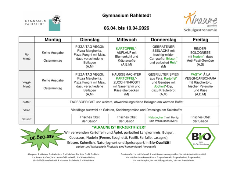Download als PDF:| Speiseplan KW 15 | 06.04.2026 - 10.04.2026 |