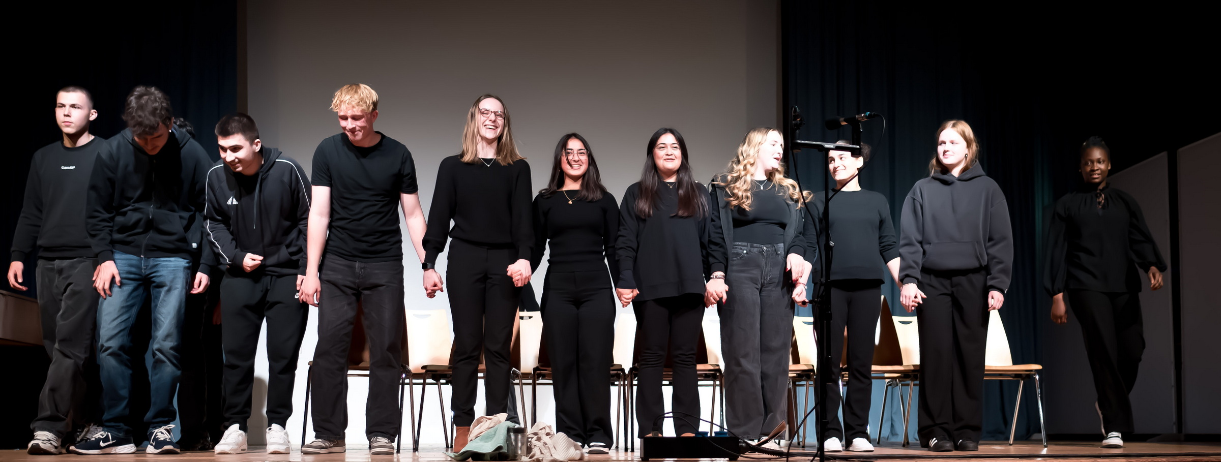 Spot On – Licht an – und los ging die 90-minütige kulturelle Fahrt am 10.10.24 durch den Stadtteil Rahlstedt: Zahlreiche Schüler*innen der Stadtteilschule Oldenfelde sowie der Gymnasien Oldenfelde und Rahlstedt wurden von Schulleiter Martin Homp auf der Bühne der Stadtteilschule Oldenfelde begrüßt.
