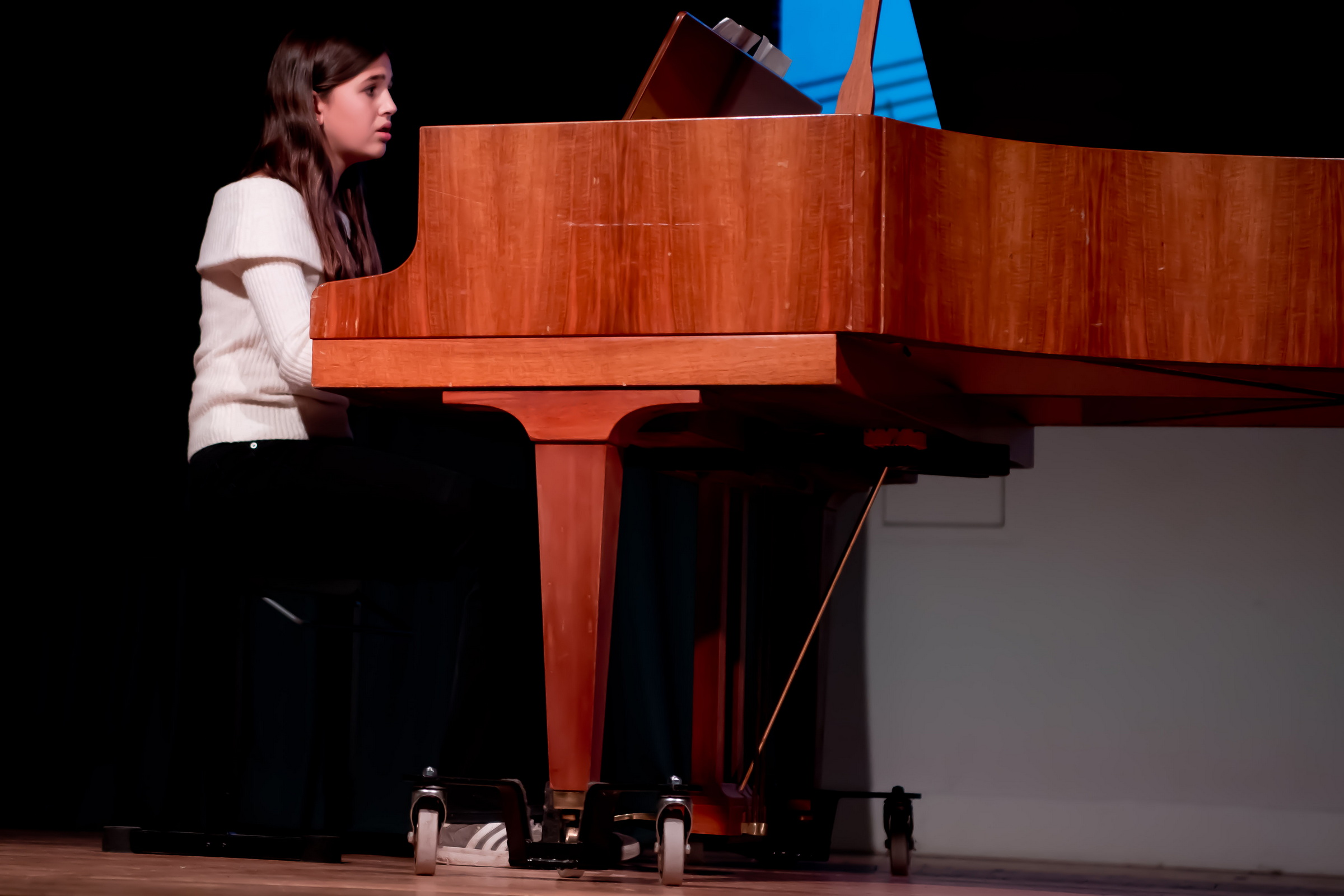 Einzelne Darbietungen von Schüler*innen am Klavier – Zhiaya Lu (GyRa), Maj Schittek (GymOld) und Lucius Lu (GyRa) belegten zudem eindrücklich, wie toll es ist, ein musikalisches Instrument virtuos für eigens komponierte Songs und klassische Werke von Clara Schumann und Chopin sowie Mozart zu beherrschen.