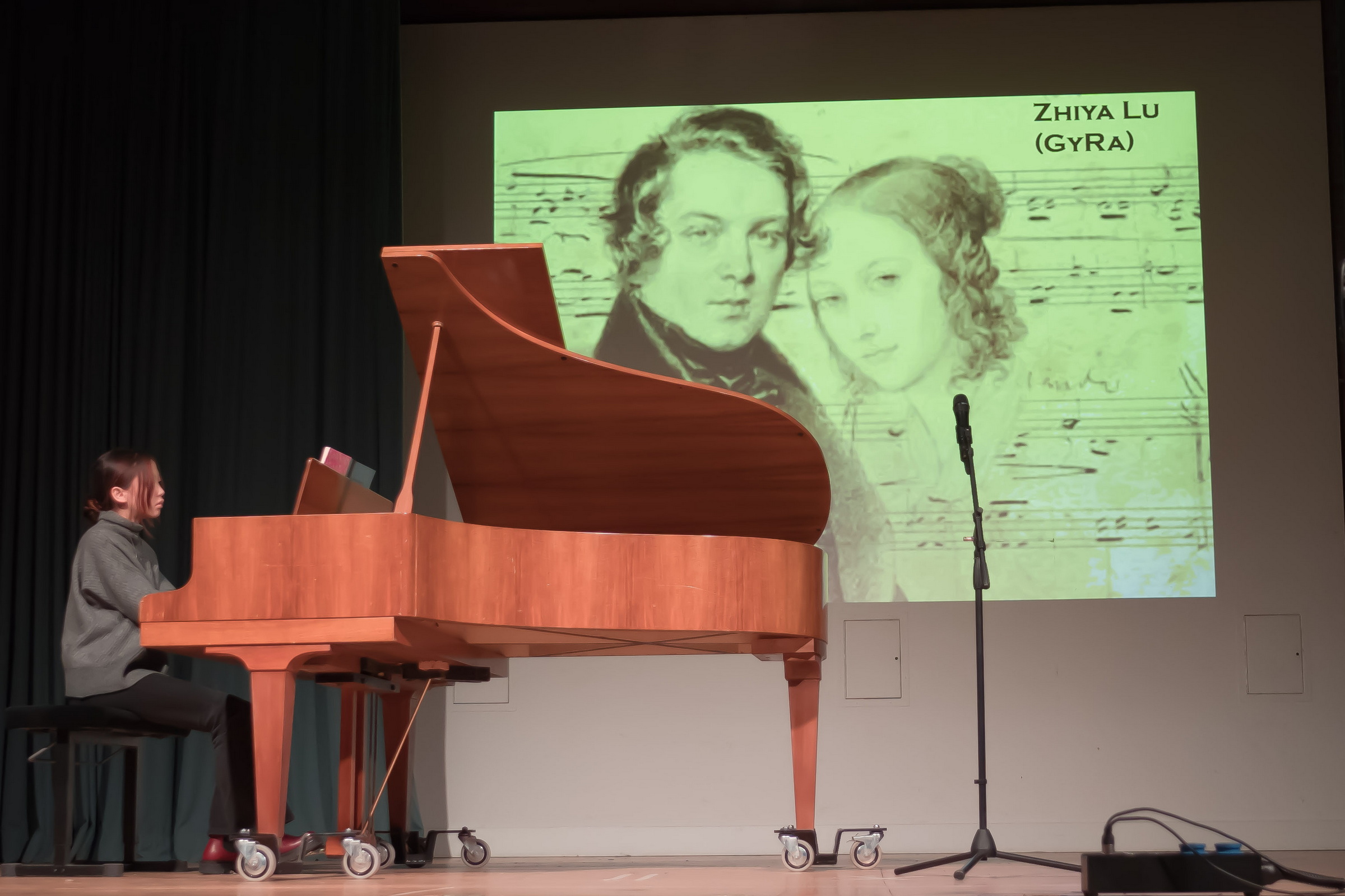 Einzelne Darbietungen von Schüler*innen am Klavier – Zhiaya Lu (GyRa), Maj Schittek (GymOld) und Lucius Lu (GyRa) belegten zudem eindrücklich, wie toll es ist, ein musikalisches Instrument virtuos für eigens komponierte Songs und klassische Werke von Clara Schumann und Chopin sowie Mozart zu beherrschen.