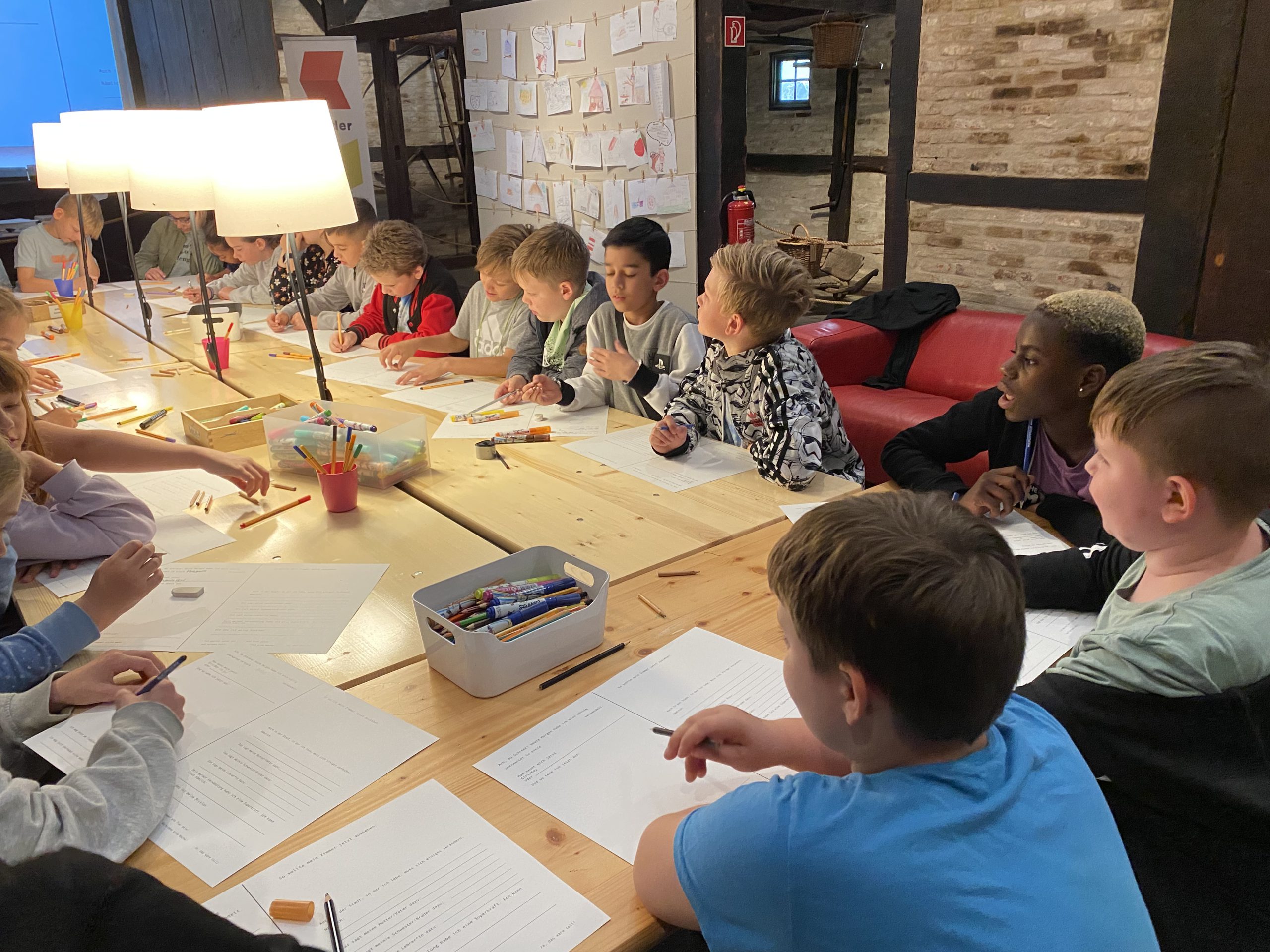 Diesen Fragen ist die Klasse 5a bei einem Workshop im Kinderbuchhaus im Museum Altona nachgegangen. Die Autorin Franziska Biermann las aus ihrem illustrierten Buch “Rabbit Boy” vor, in dem sich ein Junge in einen Hasen verwandelt und mit Hilfe von Verbündeten einen Fall aufklärt. Gespannt hörten alle zu und ließen sich mit Fantasie und vielfältigen Ideen auf die Geschichte ein. Anschließend wurden selbst Tierverwandlungen gezeichnet und gemalt und erste Ideen für eigene Geschichten notiert.
