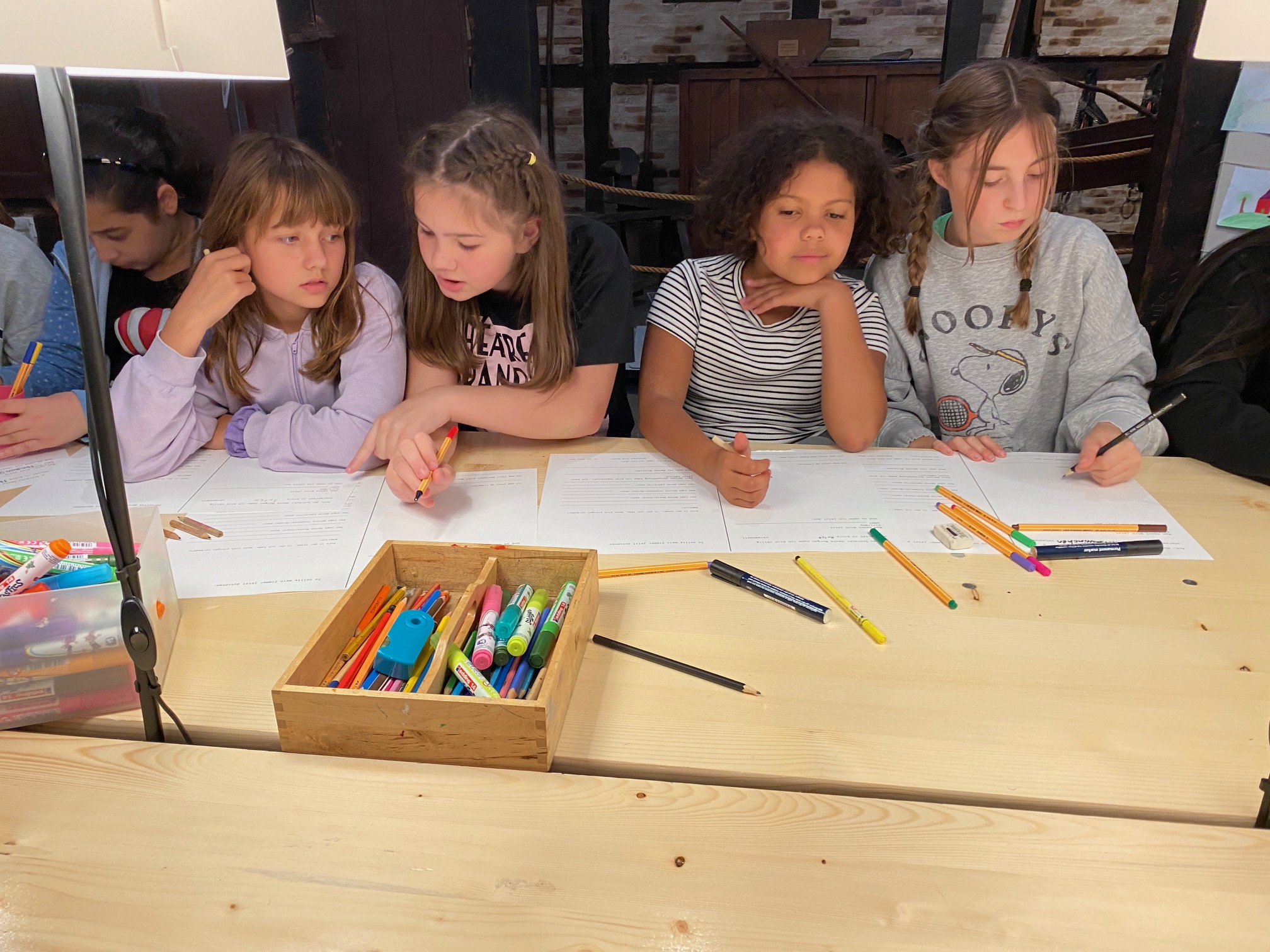 Diesen Fragen ist die Klasse 5a bei einem Workshop im Kinderbuchhaus im Museum Altona nachgegangen. Die Autorin Franziska Biermann las aus ihrem illustrierten Buch “Rabbit Boy” vor, in dem sich ein Junge in einen Hasen verwandelt und mit Hilfe von Verbündeten einen Fall aufklärt. Gespannt hörten alle zu und ließen sich mit Fantasie und vielfältigen Ideen auf die Geschichte ein. Anschließend wurden selbst Tierverwandlungen gezeichnet und gemalt und erste Ideen für eigene Geschichten notiert.
