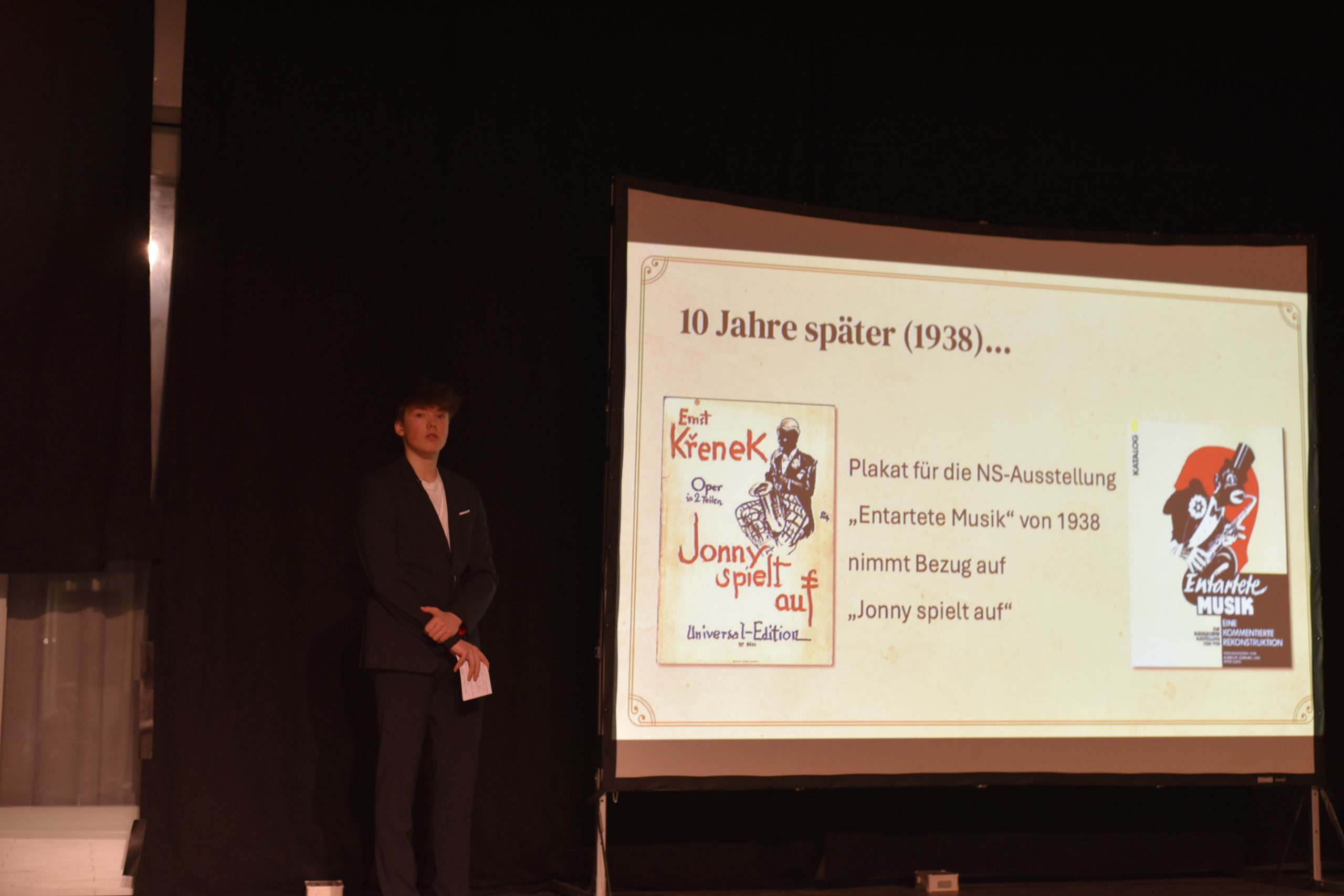 Am Beispiel der 1927 uraufgeführten Erfolgsoper Jonny spielt auf von Ernst Krenek erläuterten Lasse und Torge, wie diese dennoch zur Zielscheibe rechtsradikaler Angriffe werden konnte. 1928 wurden in München und Wien Aufführungen von Nationalsozialisten massiv gestört. Zehn Jahre später, als die Weimarer Republik bereits Geschichte war, sollte das Plakat für die NS-Ausstellung „Entartete Musik“ von 1938 erneut in diffamierender Weise Bezug auf Jonny spielt auf nehmen.
