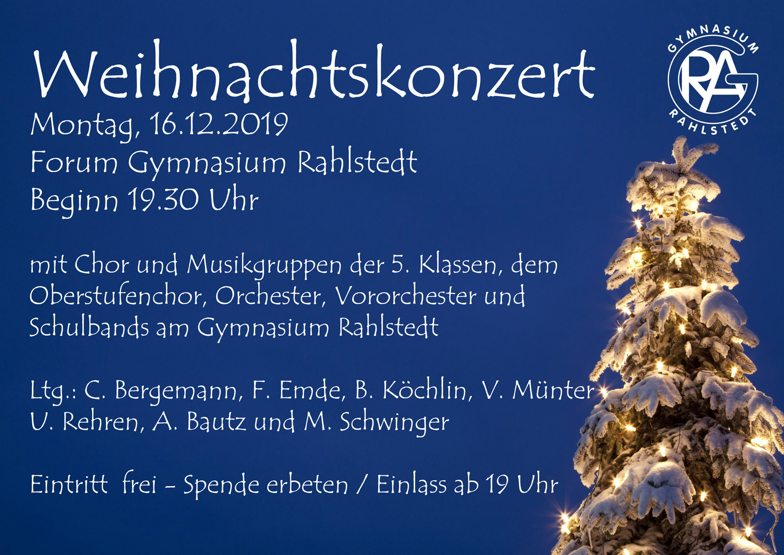 Weihnachtskonzert am Montag, den 16.12. um 19:30 Uhr
