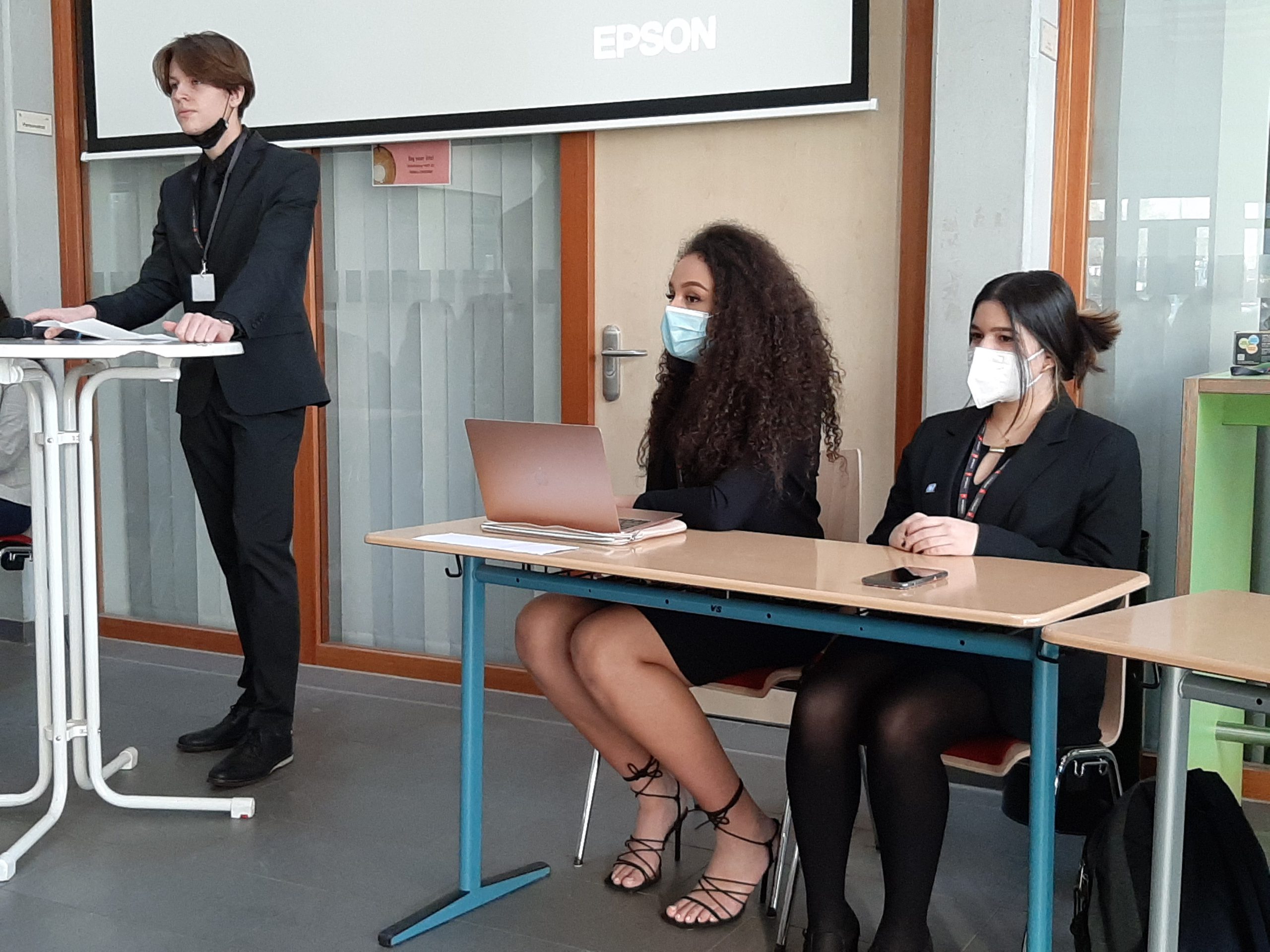 Die insgesamt 30 ‚Delegates‘ debattierten daraufhin entweder im Human Rights Council (Menschenrechts-Komitee) oder dem „3rd Committee“, welche von Justine Quansah (S4) und Hava Nasimzadah (S4) als Chairs (Vorsitzende) und Jule Greven (S2) und Melika Kolajie (S2) als Deputy Chairs (Stellvertretende Vorsitzende), geleitet wurden.