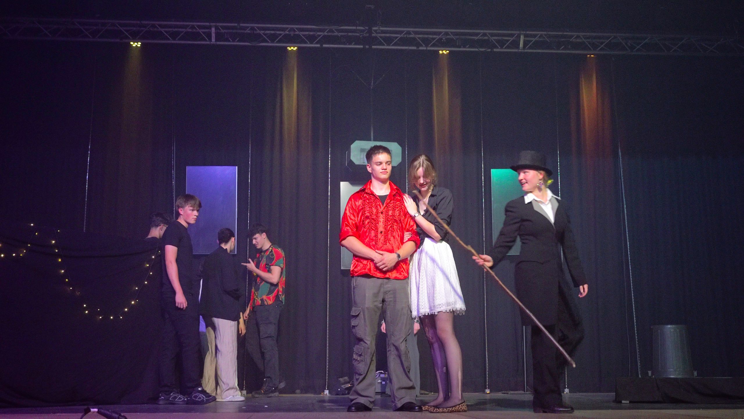 Und wenn du wissen willst, wie alles zusammenhängt, dann bist du herzlich eingeladen, Teil der Party zu sein. Schau dir die zweite Aufführung des Theaterkurses der S2 unter der Leitung von Anja Heiligtag am Dienstag, den 17.06.2025, an. Du wirst ein spielfreudiges Ensemble erleben, das mit tollen darstellerischen Leistungen, einem stimmigen Farbkonzept , eindrucksvollen Videoschnipseln und berührender Livemusik sicher auch dich überzeugen wird. Und nicht zuletzt mit einer überzeugenden Begräbnisszene: