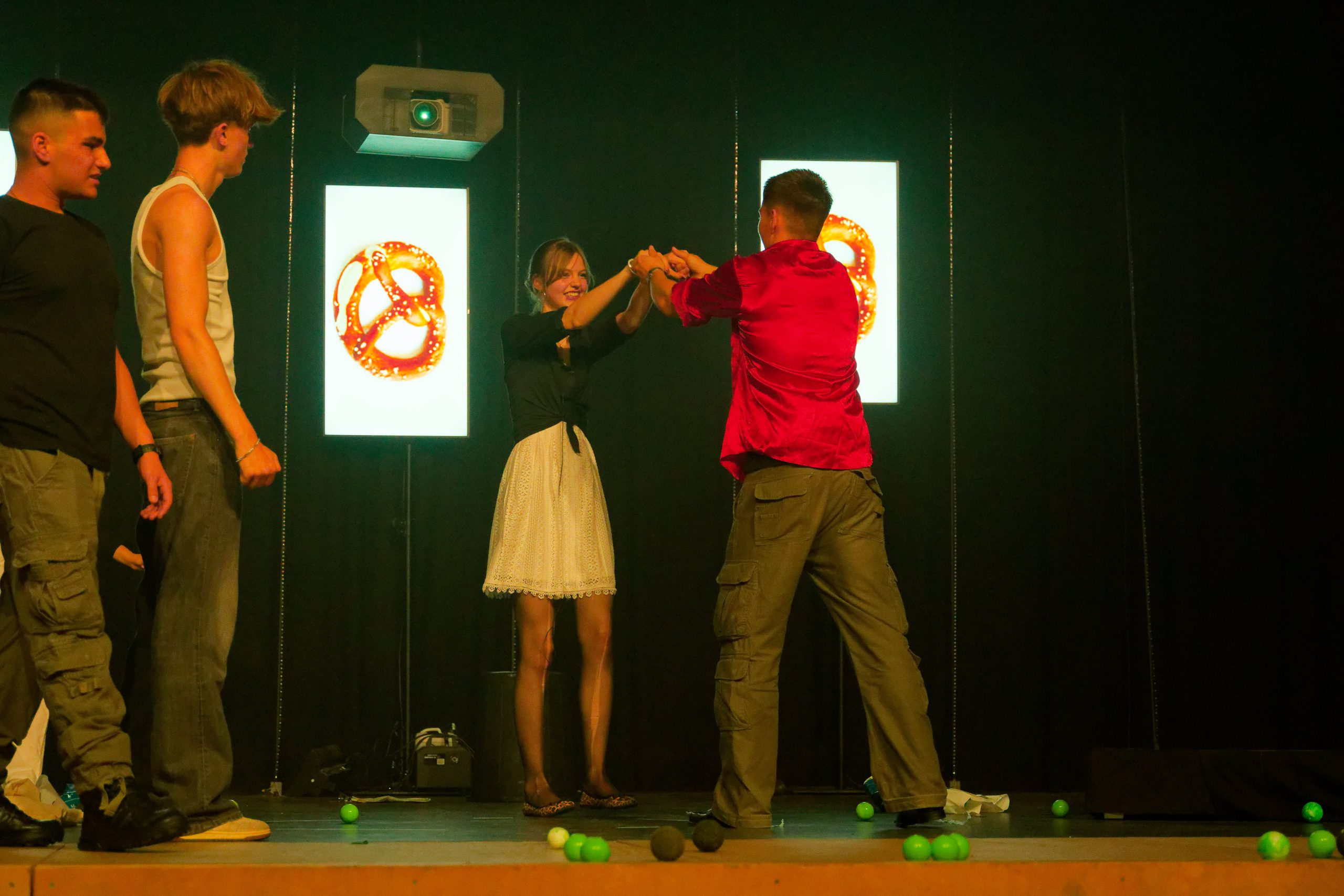 Und wenn du wissen willst, wie alles zusammenhängt, dann bist du herzlich eingeladen, Teil der Party zu sein. Schau dir die zweite Aufführung des Theaterkurses der S2 unter der Leitung von Anja Heiligtag am Dienstag, den 17.06.2025, an. Du wirst ein spielfreudiges Ensemble erleben, das mit tollen darstellerischen Leistungen, einem stimmigen Farbkonzept , eindrucksvollen Videoschnipseln und berührender Livemusik sicher auch dich überzeugen wird. Und nicht zuletzt mit einer überzeugenden Begräbnisszene: