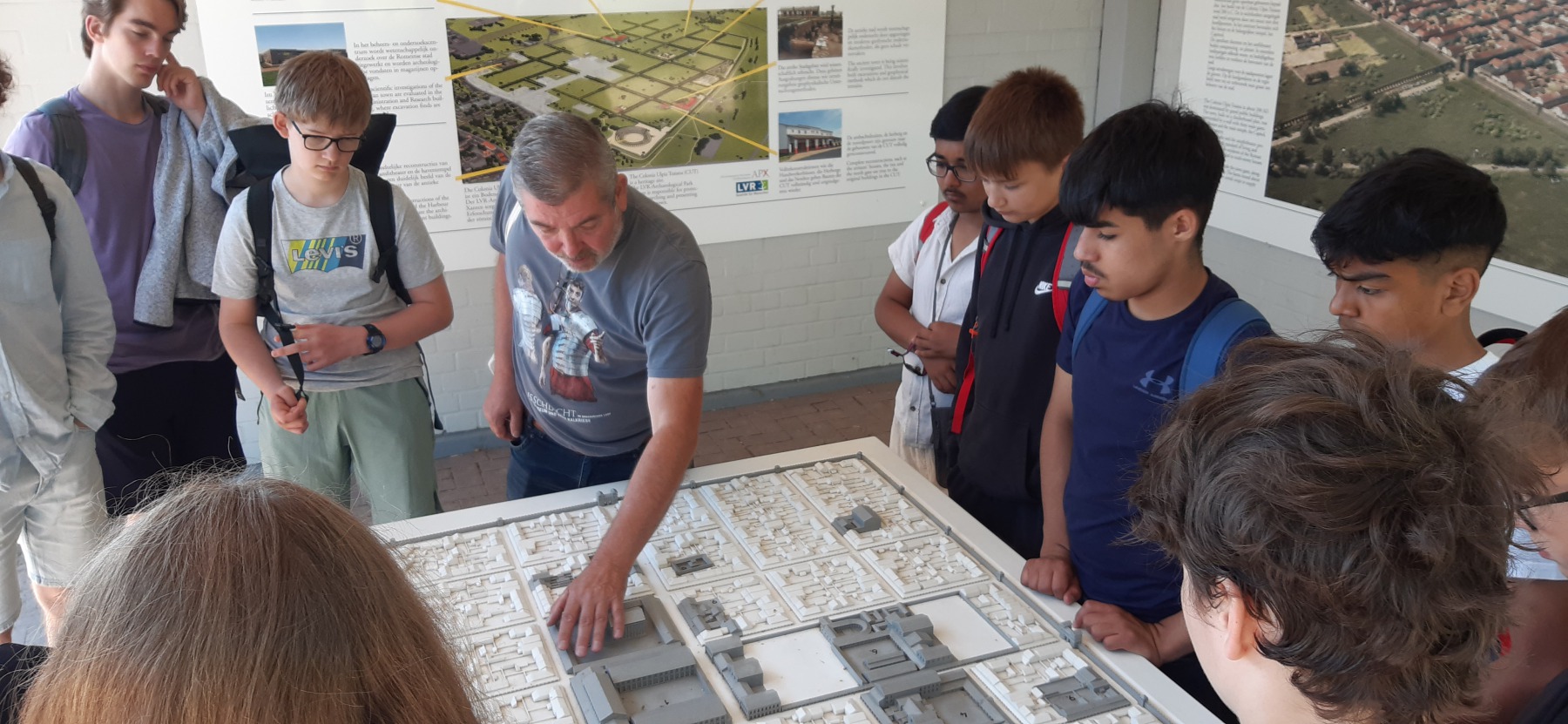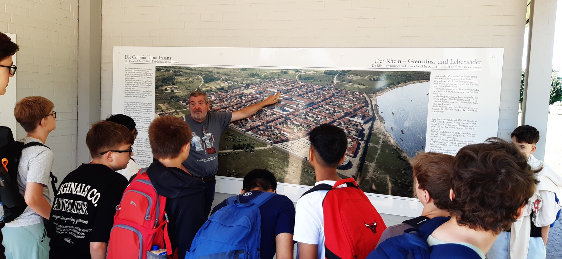 Die Lateinklassen der Jahrgangsstufe 7 fuhren auch in diesem Jahr wieder nach Xanten und Kalkriese. Bei bestem Wetter erfuhren die Schüler:innen viel Interessantes über das Leben und den Alltag in der Colonia Ulpia Traiana: römische Stadtkultur und Infrastruktur wie Thermenanlagen, Frischwasser- und Abwassersystem, Versorgung, Legionärsleben, Handel mit den einheimischen Germanen, Freizeitgestaltung wie beliebte Spiele und Gladiatorenkämpfe. Dabei wurden die Arbeit und die Erkenntnisse der Archäologen genauso begutachtet wie die Exponate und Fundstücke der Ausstellung des Regionalmuseums Xanten.