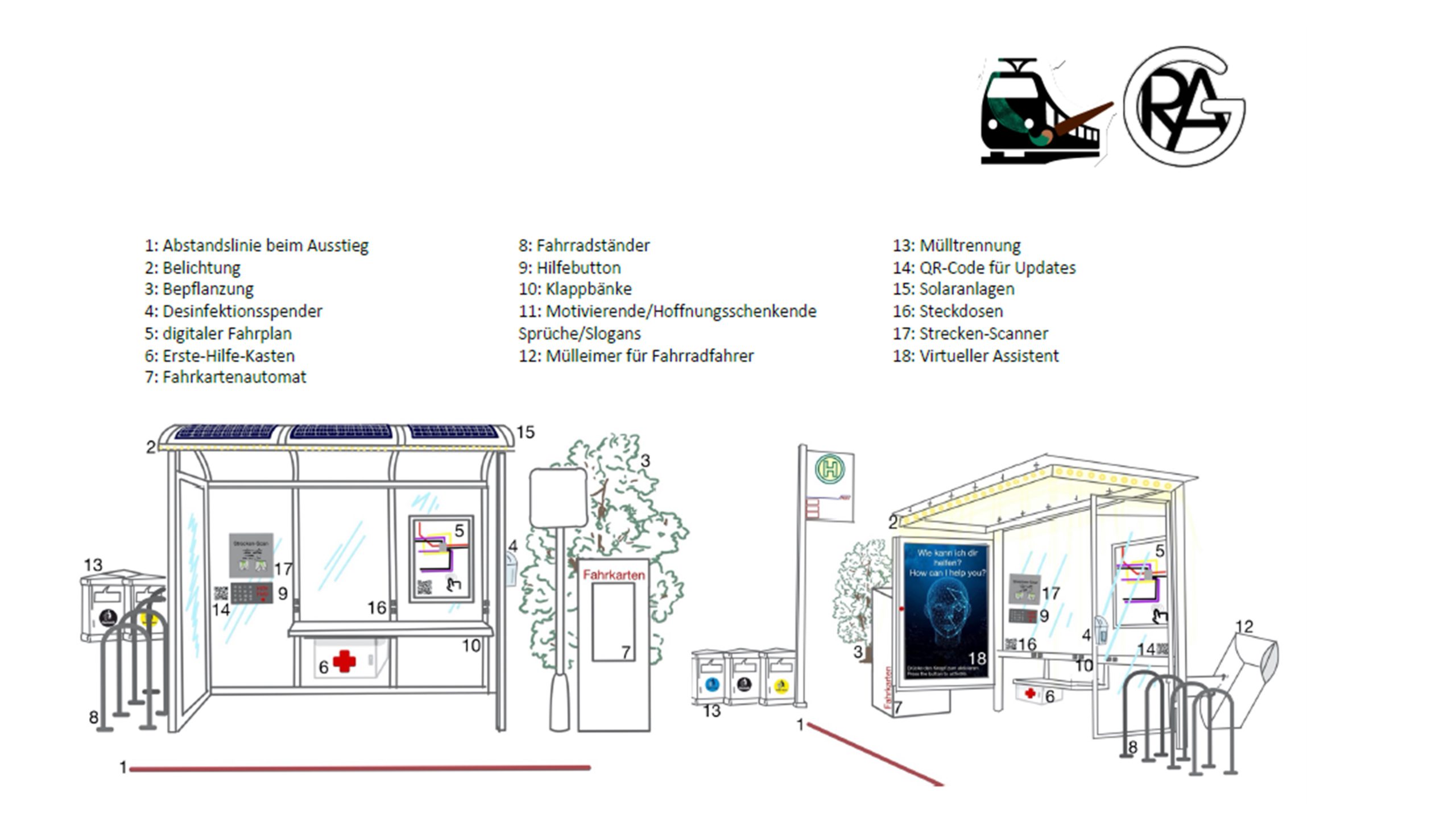 Grün statt Glas: Die Gruppe zeigt vor einer gewöhnlichen Haltestelle, was sie alles anders machen würde